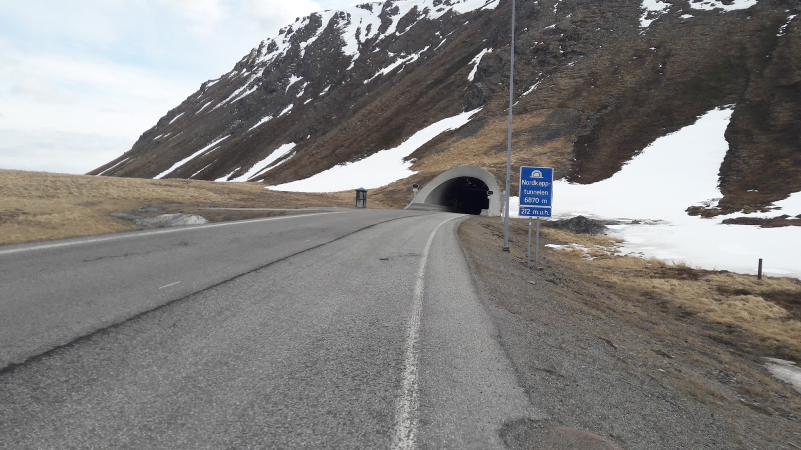 Tunnels were the flavour of the day, all five of them, & I was well aware of the "scary" one which some cycle tourists prefer to avoid by boat/a very long diversion. It takes you from Mageroya to the mainland, & is 4.4km long, & descends sub-sea to 200m at a 10% gradient, then quite kindly returns upwards in the same way.